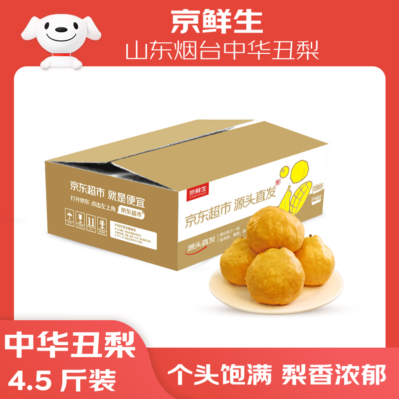 京鲜生 山东烟台中华丑梨 净重4.5斤 6-9粒 生鲜水果 源头直发