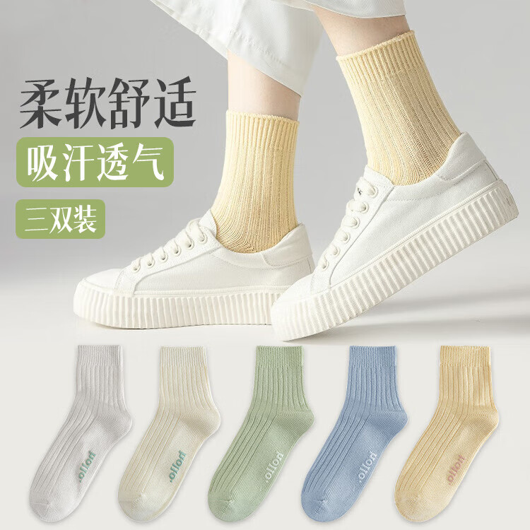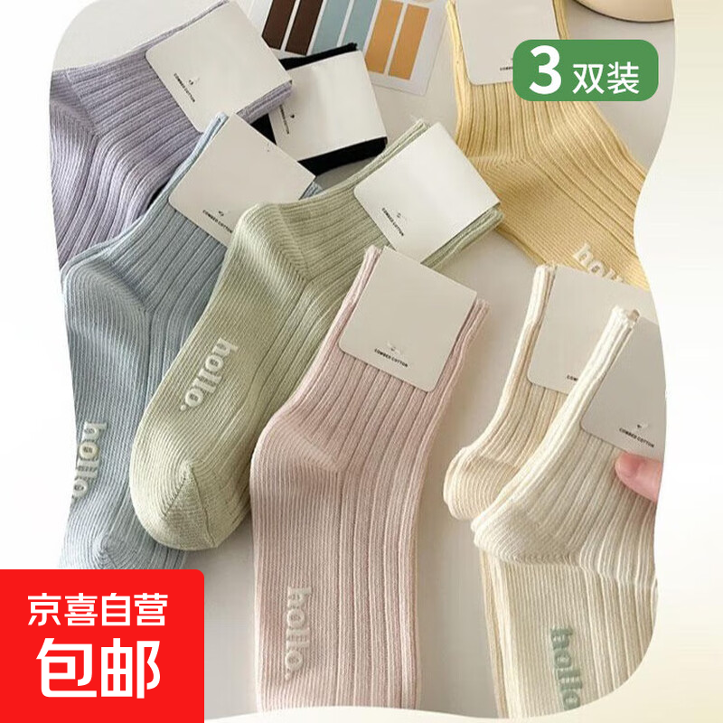 【马卡龙色系】袜子女糖果色四季款袜子女士亲肤中筒袜 颜色随机发 3双