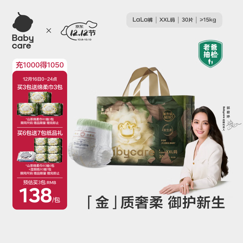 babycare金山茶花拉拉裤XXL30片(>15kg)婴儿尿不湿超薄透气新生柔花苞裤