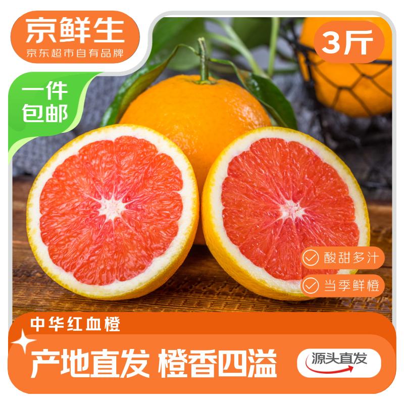 京鲜生 湖北中华红血橙净重3斤 单果150g+ 新鲜水果源头直发包邮