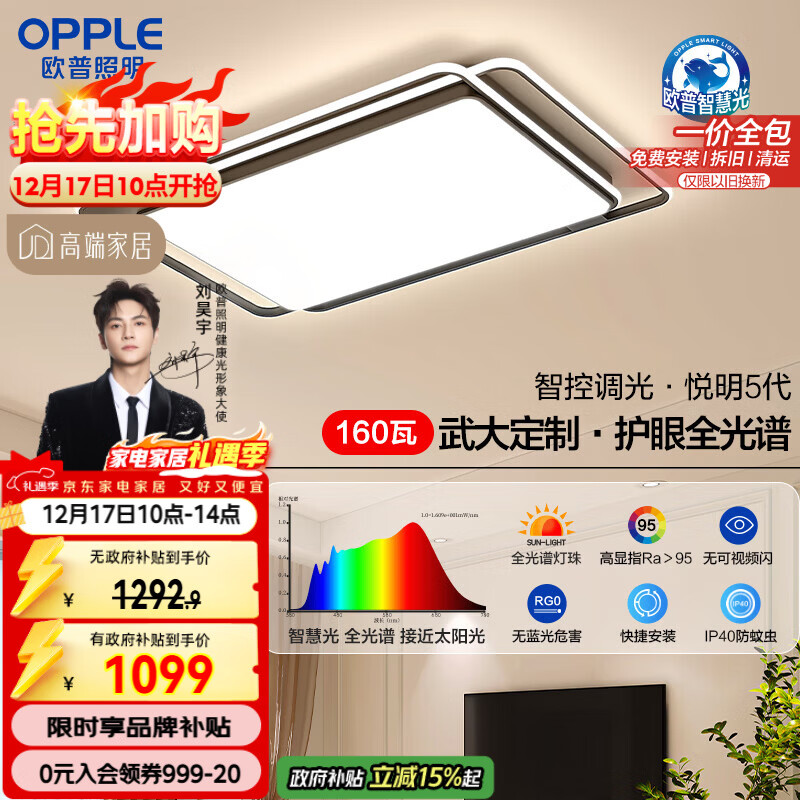 欧普照明(OPPLE)吸顶灯客厅灯护眼全光谱智能LED照明灯具简约大气悦明5 包安装