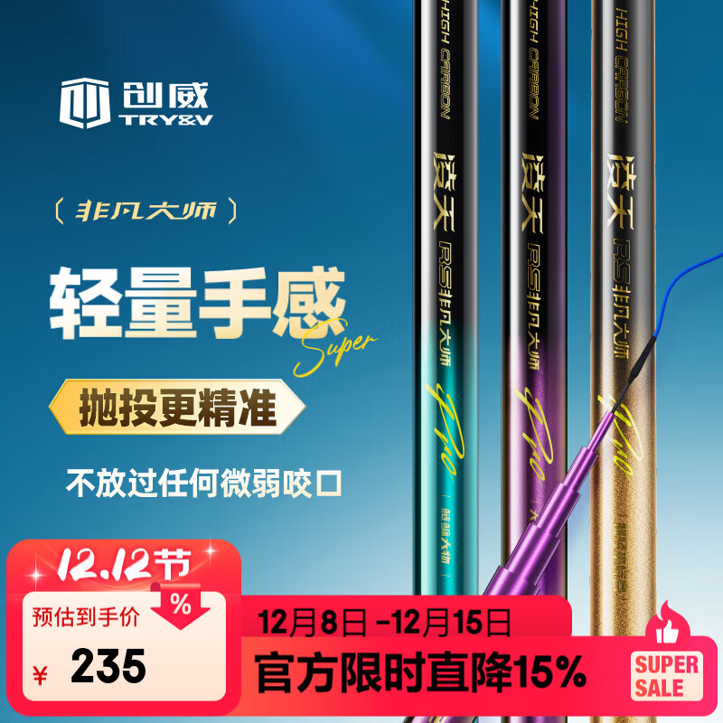 创威凌天非凡大师极轻小综合超轻鱼竿台钓竿钓鱼竿手竿鲢鳙鱼竿大物竿 7.2m 极轻小综合
