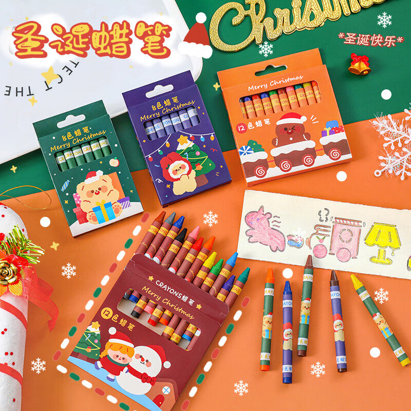 圣诞蜡笔12色蜡笔套装儿童涂鸦绘画笔美术油画棒圣诞节小礼品 圣诞泰迪8色