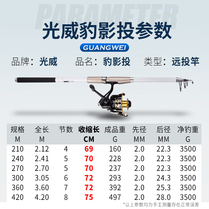 GW光威鱼竿豹影投3.0米超硬海竿海杆套装全套钓鱼竿抛竿远投竿渔具