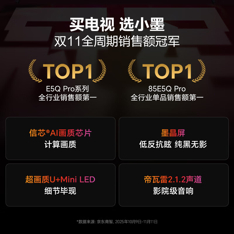 海信电视小墨E5Q Pro75英寸【送装一体-固定挂架】768分区U+MiniLED 信芯芯片 抗反光防眩光墨晶屏
