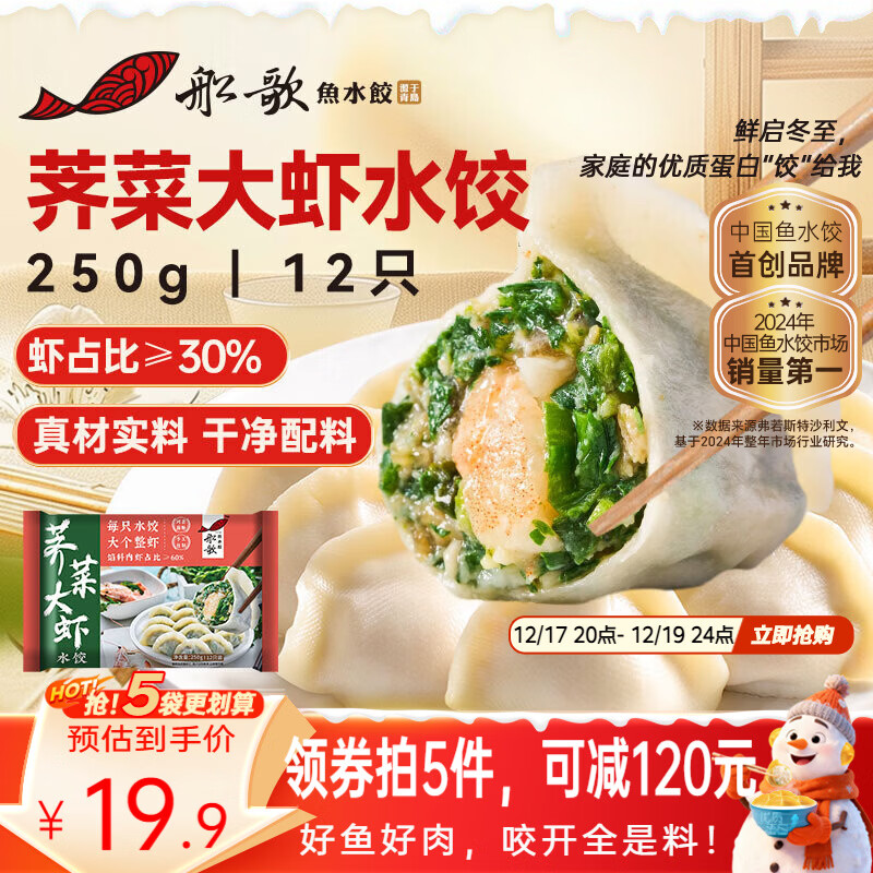 船歌鱼水饺荠菜虾皇水饺250g/12只 健康早餐夜宵 海鲜手工速冻饺子 生鲜速食
