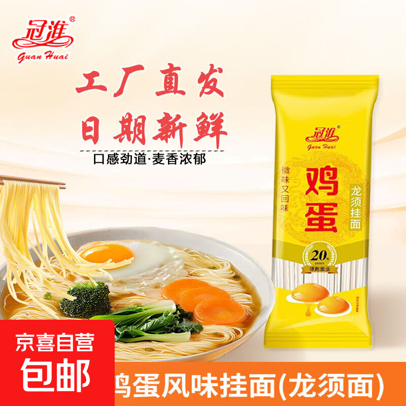 【渠道专享】家常鸡蛋面挂面面条刀削面荞麦面不糊汤早餐面清汤面 冠淮鸡蛋面200g