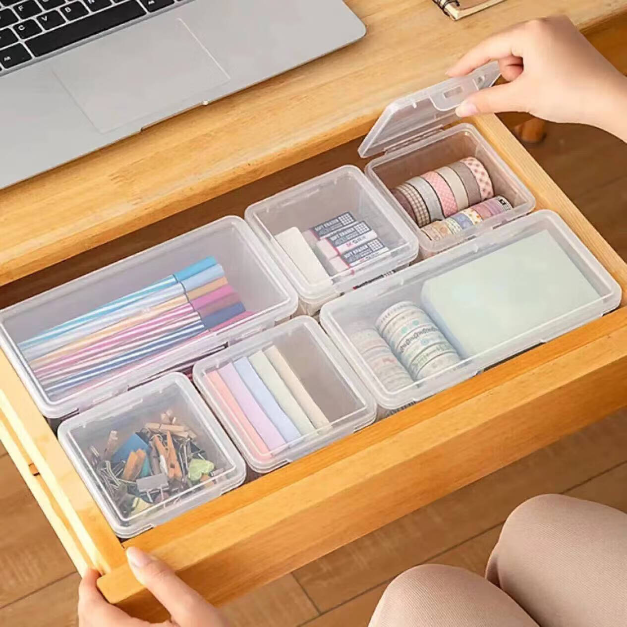 多功能文具盒收纳盒万能收纳日用家用厨房书桌收纳透明长方形文具收纳盒 2个装【福利价】