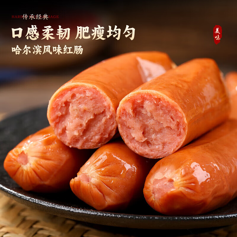 哈尔滨风味红肠特产烟熏烤肠火腿肠即食香肠肉肠宿舍零食80g/袋 哈尔滨风味红肠80g/袋 80g*3包【3根】