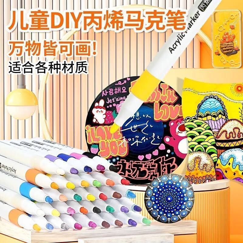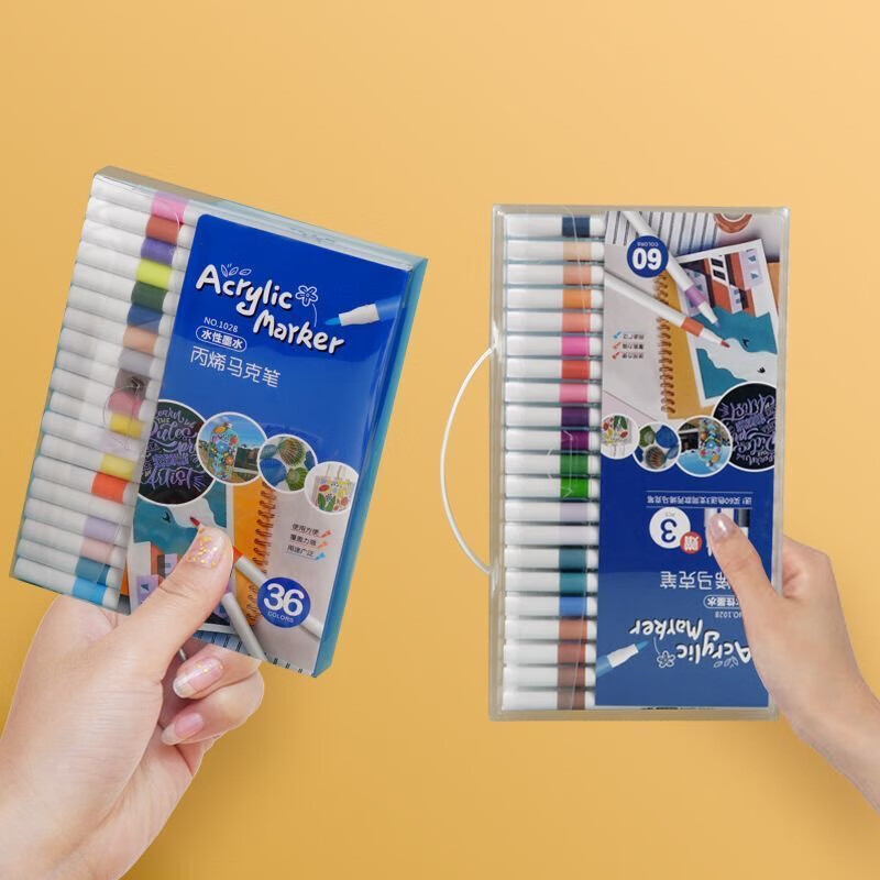 丙烯马克笔24色48色学生美术专用防水不透纸不晕染丙乙烯绘画彩笔 12色PVC盒装丙烯马克笔
