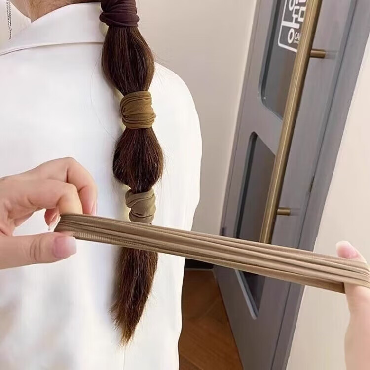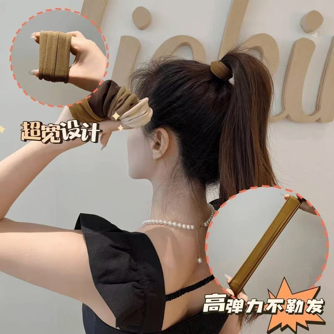 爆款高弹力无缝皮筋女扎头发圈头饰超宽面膜肌头绳新款高马尾发绳橡皮筋 黑咖色系5根装 【纹理款