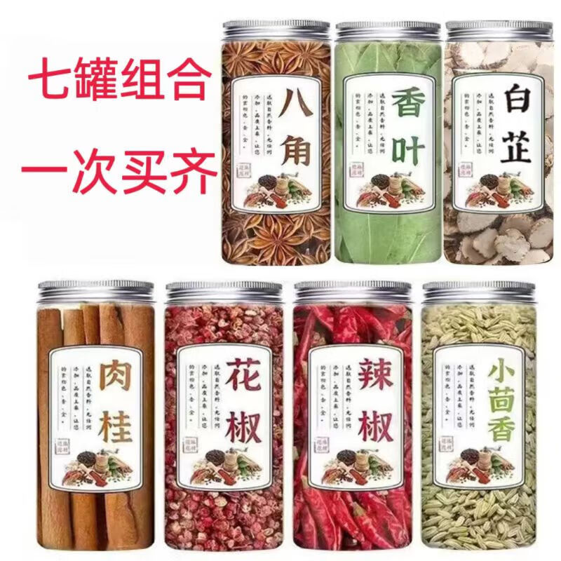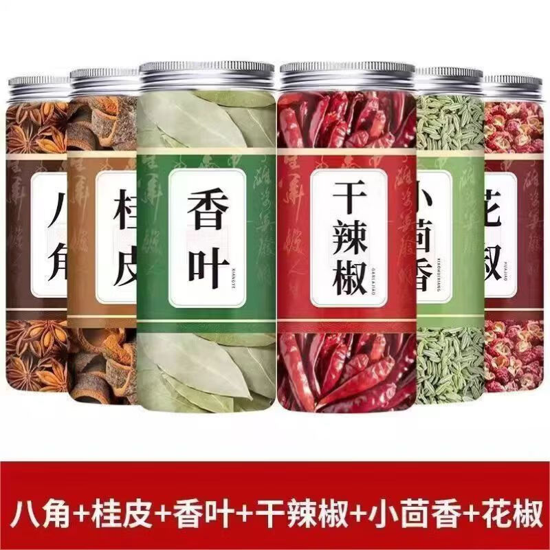 香料调料八角桂皮香叶花椒小茴香辣椒白芷家用调味料组合装卤料 【6罐净重360g】花椒+桂皮+八角+香叶+辣椒+白芷