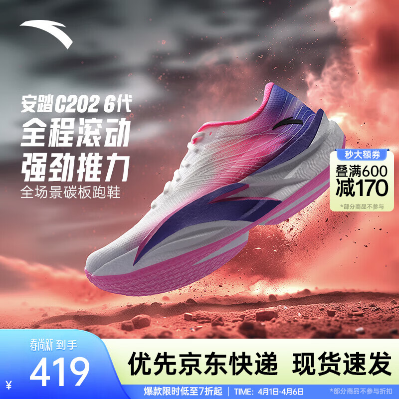 安踏C202 6代丨贝克勒同款专业碳板马拉松竞速跑鞋氮科技男女运动鞋 【男款】纸莎白/玫红/紫-11 40.5