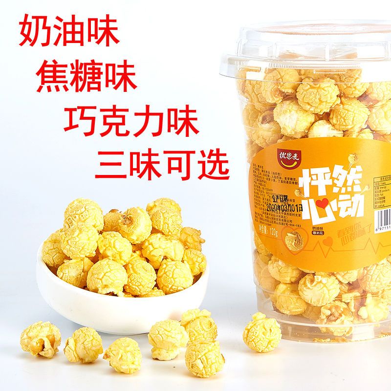 爆米花奶茶杯美式球形玉米花电影院整箱批发奶油焦糖巧克力味 120g奶油味*1杯