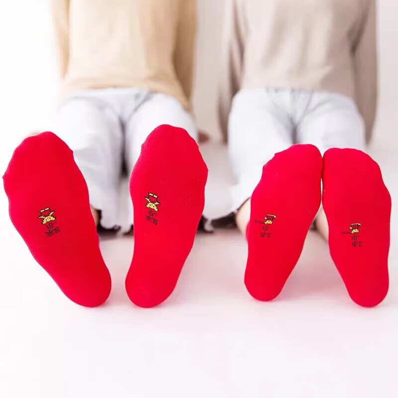 【新年红袜】本命年红袜子中国仿刺绣红色福字新年中筒袜 【实惠换洗】 3双 均码
