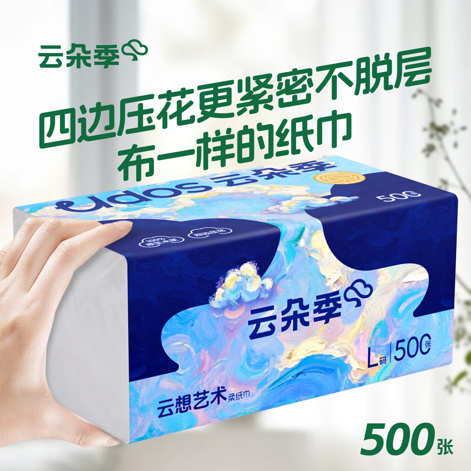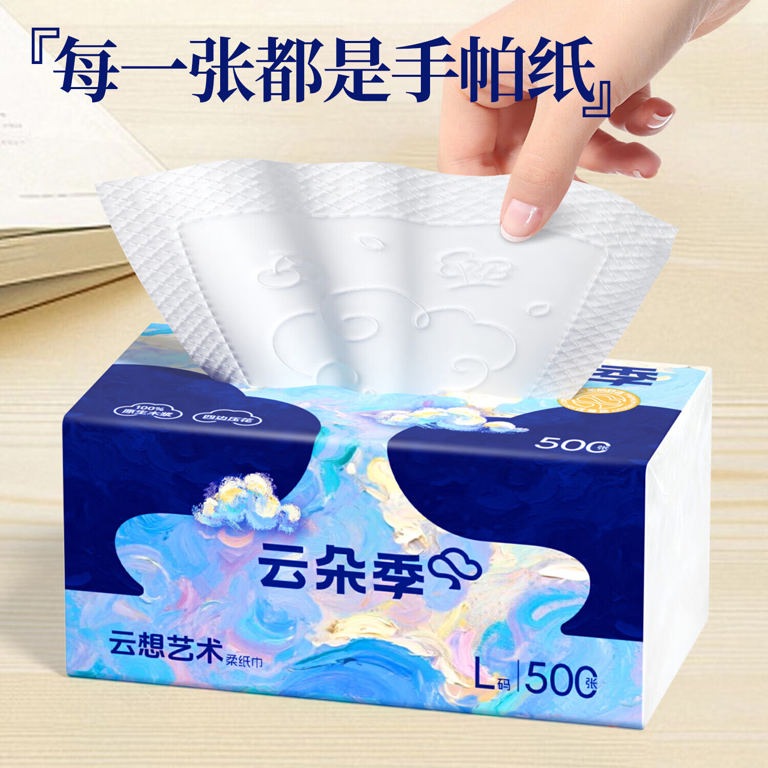 云朵季500张大包抽纸5层加厚纸巾餐巾纸卫生纸优等品大尺寸面巾纸 5层 500张*5包