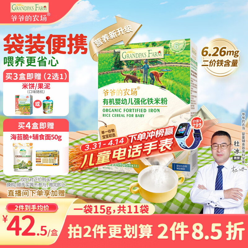 爷爷的农场有机原味婴幼儿高铁米粉6-12个月165g易冲泡米糊辅食便携装6月+