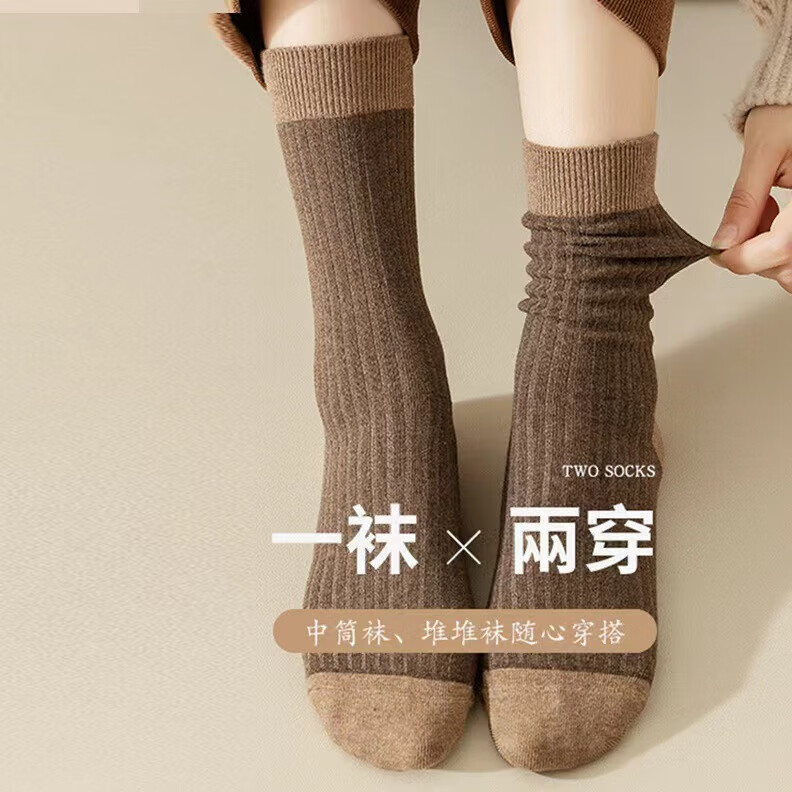 【?春季上新】袜子男女同款秋中筒袜亲肤透气不闷脚日系堆堆袜 两双装 2双