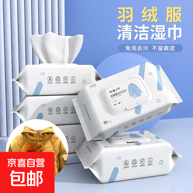 衣物清洁湿巾免洗强力去污渍油渍擦洗干洗剂家用湿纸巾批发羽绒服 羽绒服湿巾 两包装