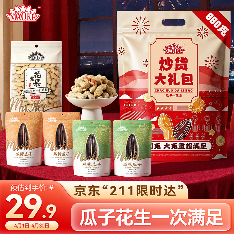 MAOKE瓜子花生大礼包880g年货送礼葵花籽坚果零食团购礼盒新春贺礼