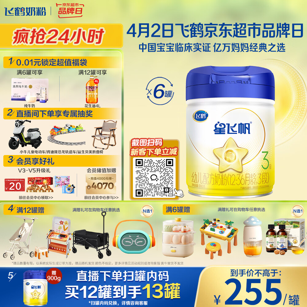 飞鹤星飞帆幼儿配方奶粉3段(1-3岁) 900g*6罐