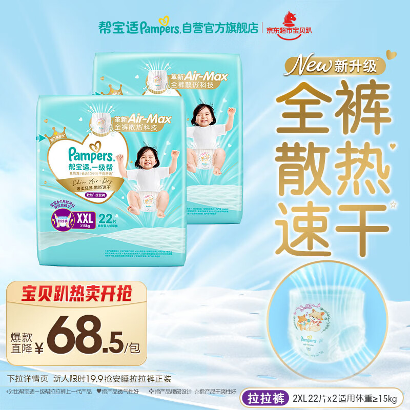 帮宝适散热王者一级帮拉拉裤新生儿婴儿尿不湿尿片超薄透气XXL44