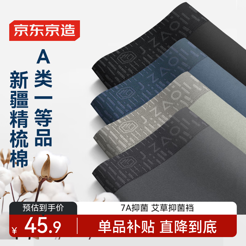 京东京造【总裁内裤】纯棉男士内裤7A级抗菌男平角裤大码四角短裤衩4条2XL