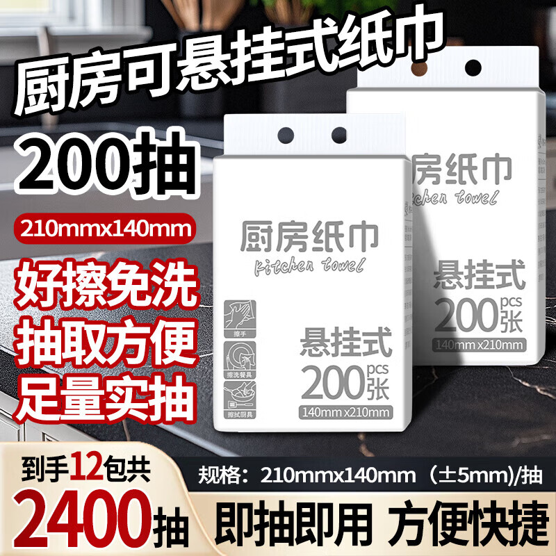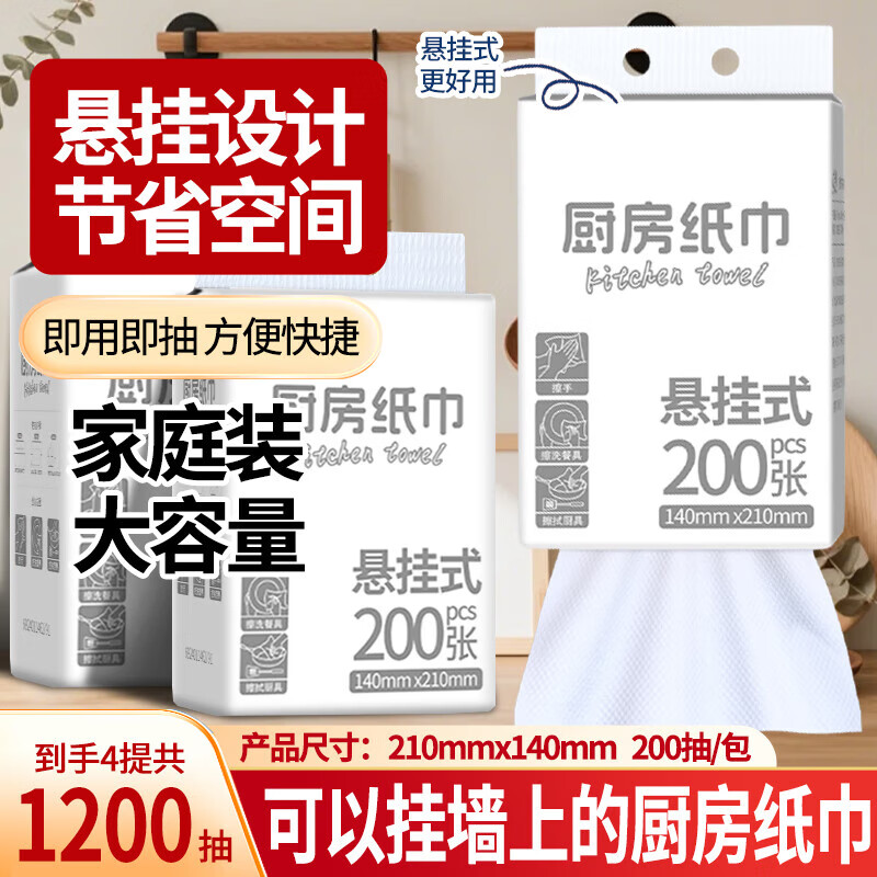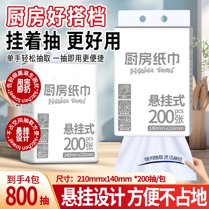 【食品级】小白厨房纸巾悬挂抽取式吸油吸水纸加厚擦手纸料理纸 悬挂式厨房纸巾 1层 200抽*1提