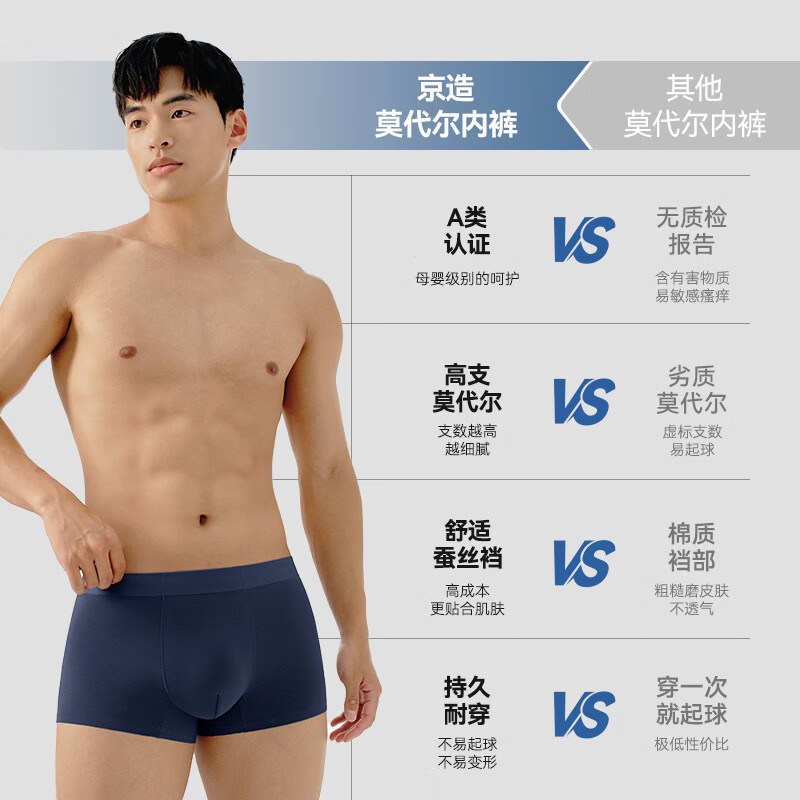 京东京造26年真80支兰精莫代尔男士内裤无痕平角内裤男 组合一 XL