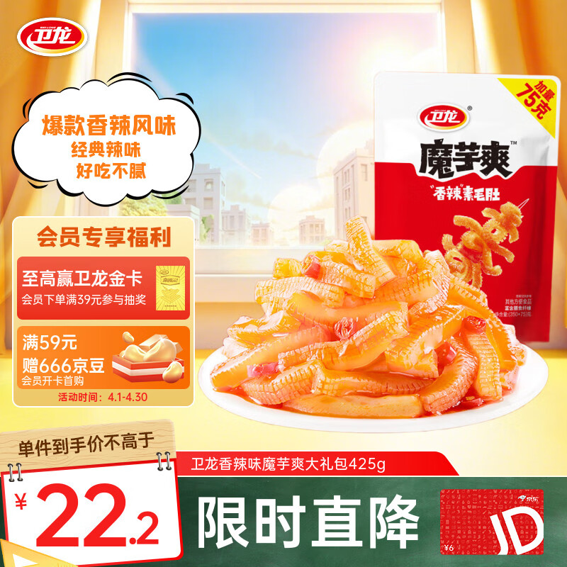 卫龙 魔芋爽 辣条 香辣素毛肚 休闲小零食 魔芋爽大礼包 425g/袋