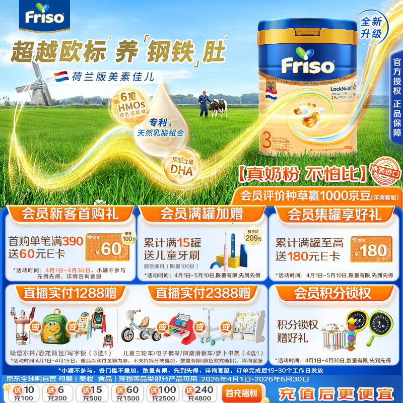 美素佳儿荷美白金3段荷兰版美素佳儿6HMO幼儿配方奶粉800克