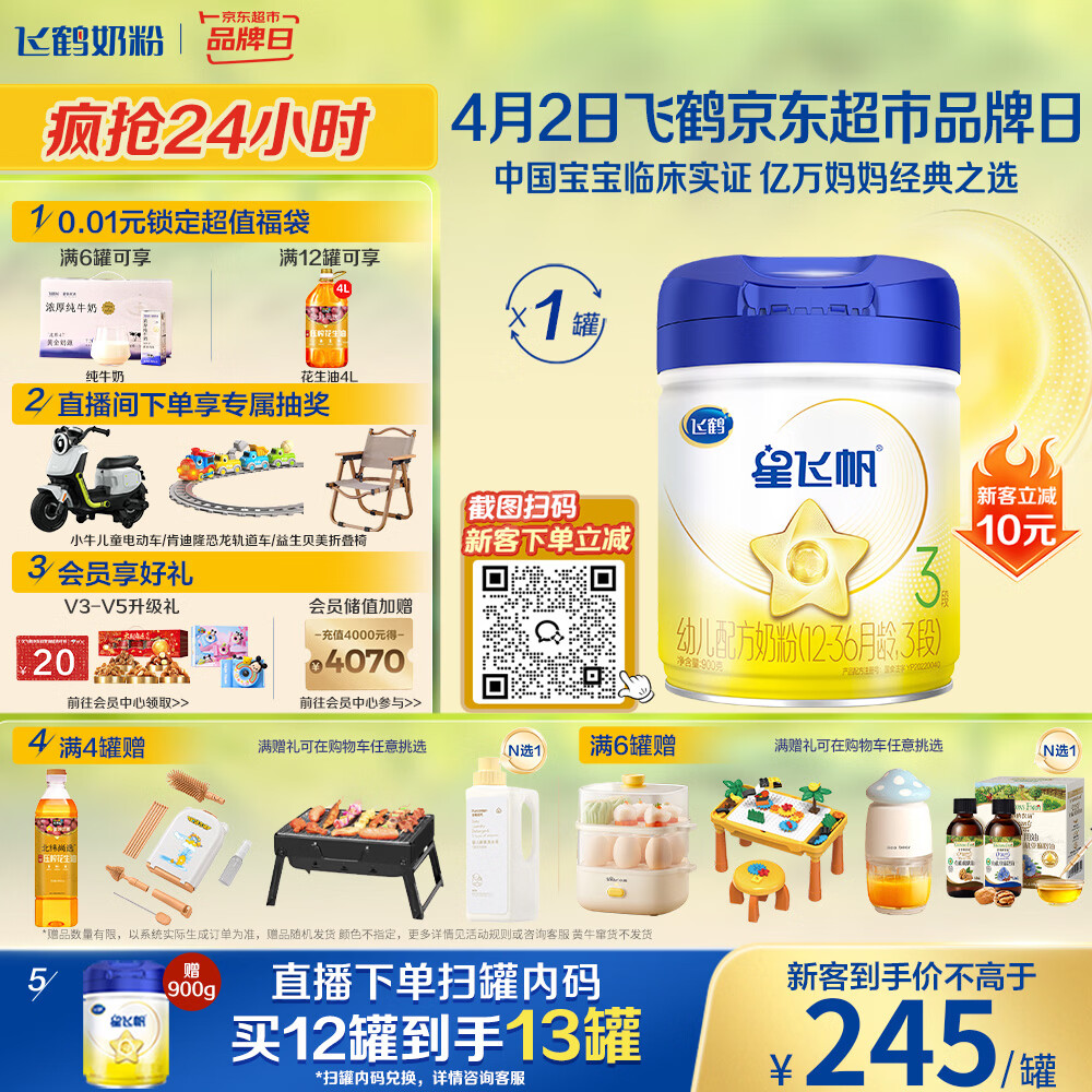 飞鹤星飞帆 幼儿配方奶粉3段(1-3岁) 900g 【5HMOs】专利OPO
