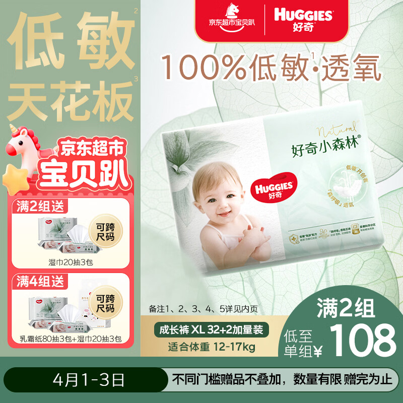 好奇(Huggies)小森林拉拉裤XL32+2片(12-17kg)尿不湿心钻【透氧顶配更0痕】