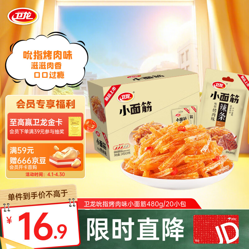 卫龙 辣条 烤肉味480g 吮指小面筋 怀旧豆干小零食 20小包 便携装