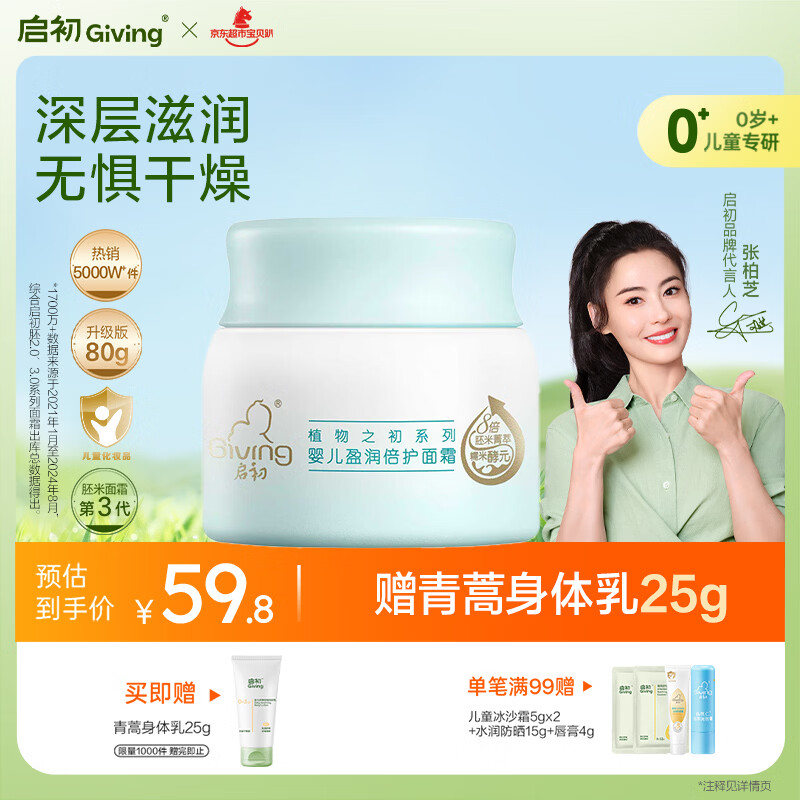启初胚米3.0婴儿盈润倍护面霜80g儿童面霜宝宝保湿温和润肤滋润护肤