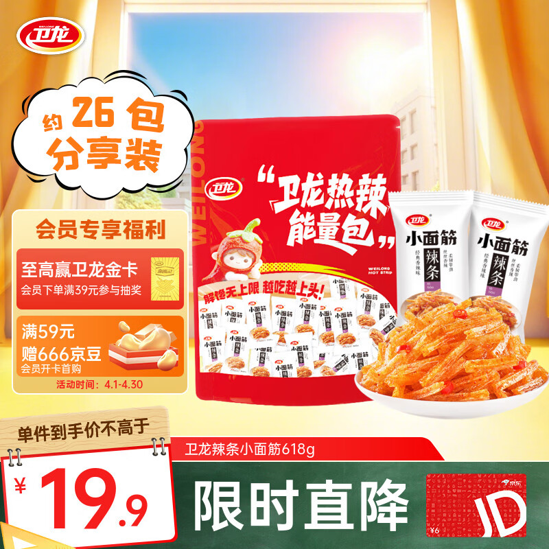 卫龙 辣条 面筋 香辣味小面筋624g/约26包休闲成人解馋小零食礼包