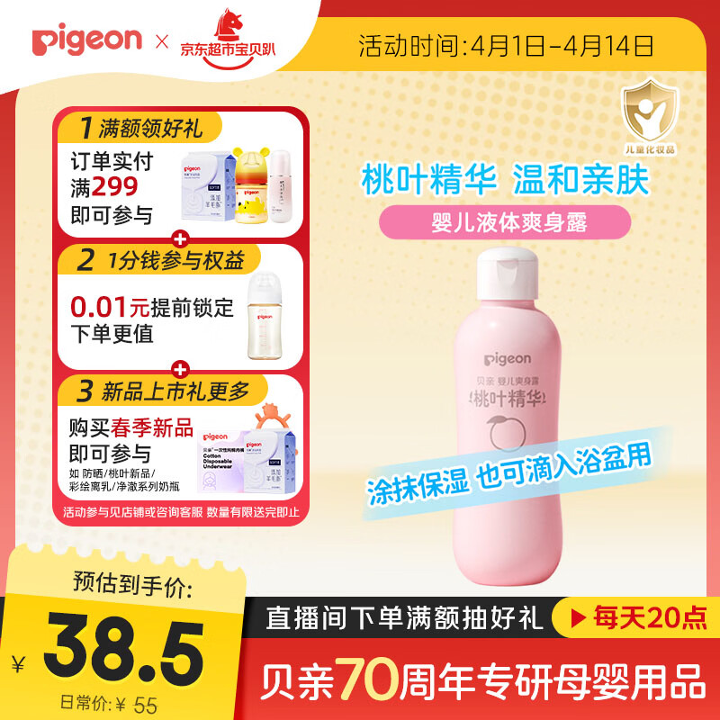 贝亲(Pigeon)桃叶精华 婴儿液体爽身露 四季通用 200ml IA171