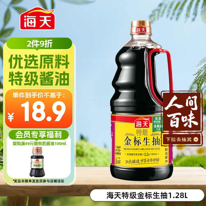海天 特级金标生抽酱油1.28L【特级酱油】金标系列 0添加防腐剂