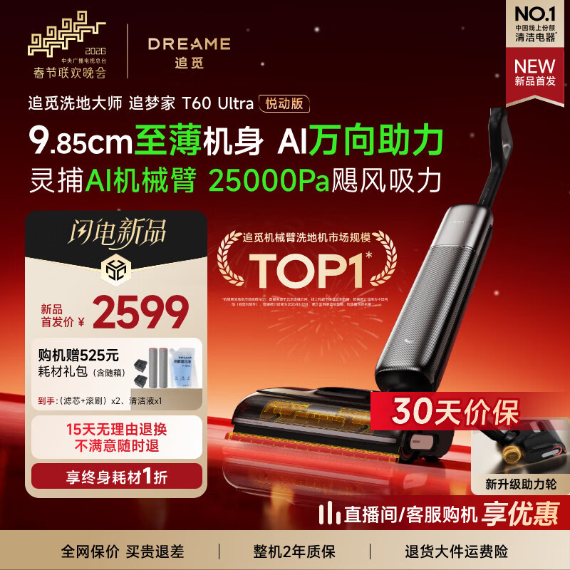 追觅【重磅新品春晚姐妹款】洗地机追梦家T60Ultra悦动版【万向助力】家用洗拖吸拖一体机自动清洗