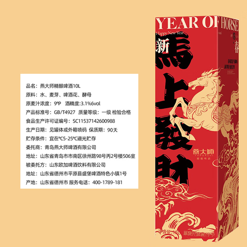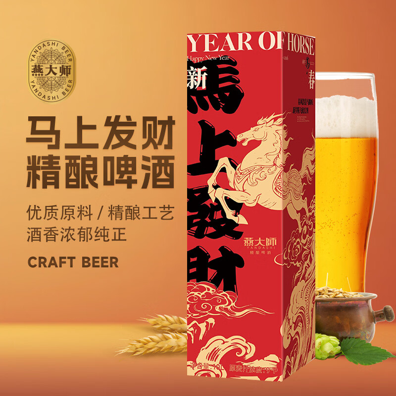 燕大师精酿啤酒90天鲜啤马上发财红色大瓶分享装10L*1瓶送礼礼盒