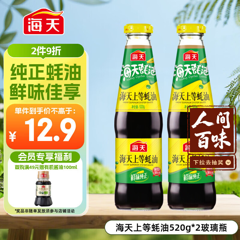 海天 上等蚝油520g*2瓶 凉拌炒菜火锅烧烤调料 家用调味品