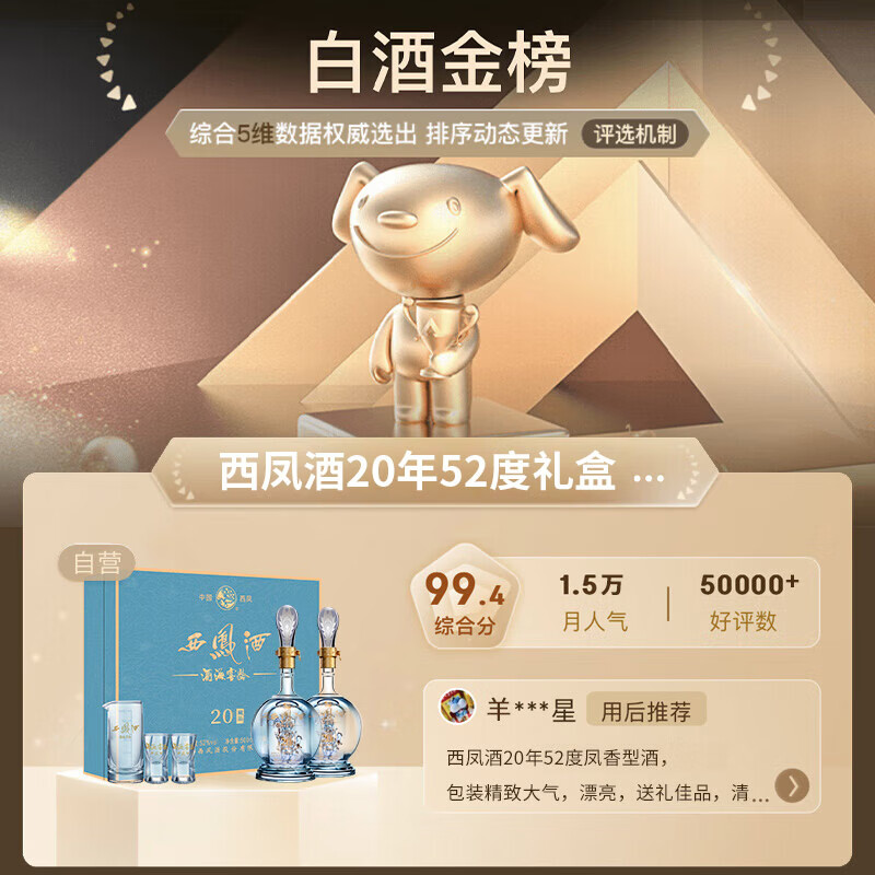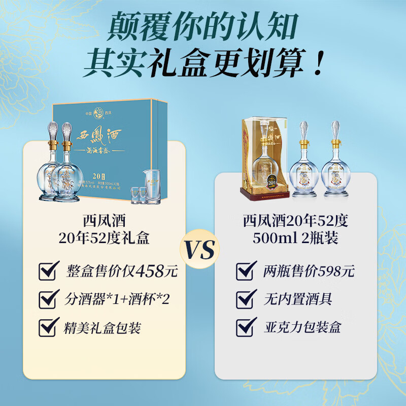 西凤酒海窖龄 20年52度礼盒500mL*2瓶 凤香型白酒 婚庆喜宴请自饮送礼