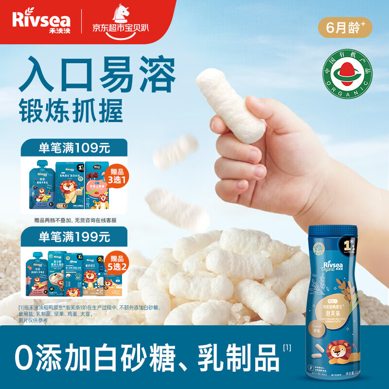 禾泱泱有机婴幼儿高钙泡芙条原味32g 宝宝婴儿零食 稻鸭原生低敏6月+