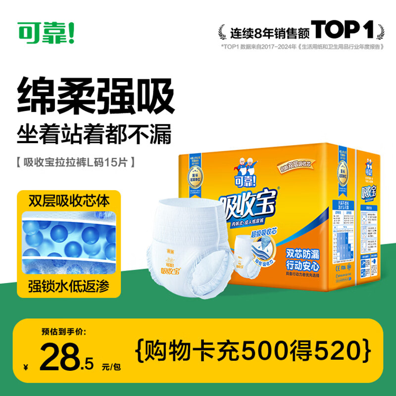 可靠(COCO)吸收宝成人拉拉裤L15片(臀围95-120cm) 内裤型纸尿裤尿不湿