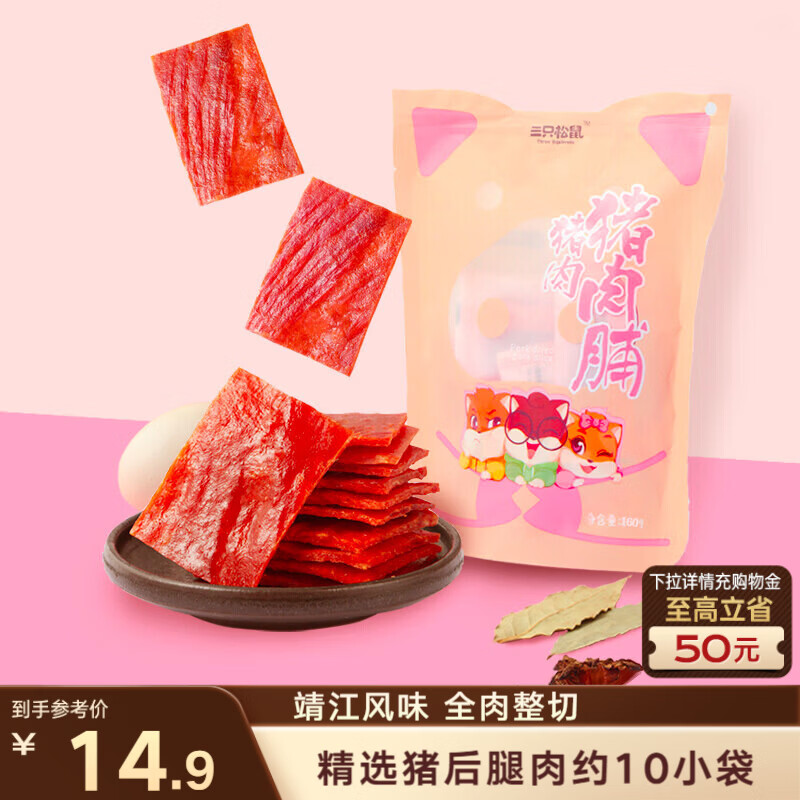 三只松鼠猪肉脯原味160g袋装零食靖江风味肉干肉脯休闲小吃独立包装