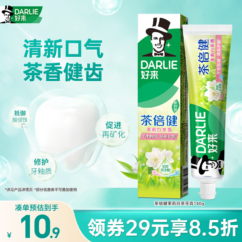 好来(DARLIE)(原黑人)茶倍健茉莉白茶牙膏清新口气健齿护龈140g新旧随机发货