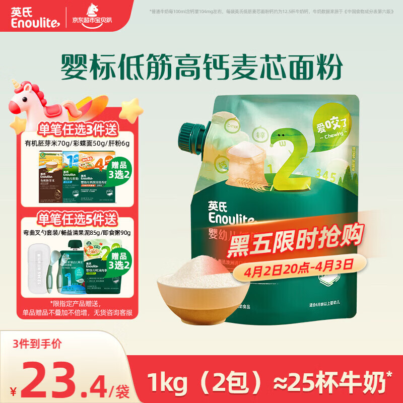 英氏婴幼儿低筋麦芯面粉500g 婴标自制辅食蛋糕烘焙面包吐司儿童早餐