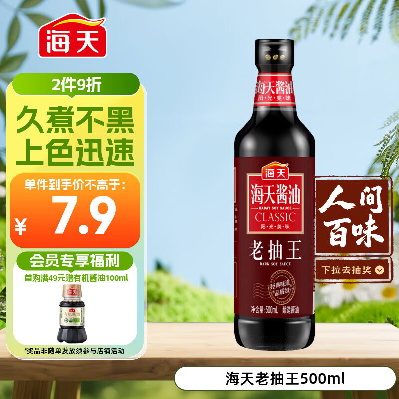 海天 老抽王酱油500ml【酿造酱油】经典系列 0添加防腐剂红烧