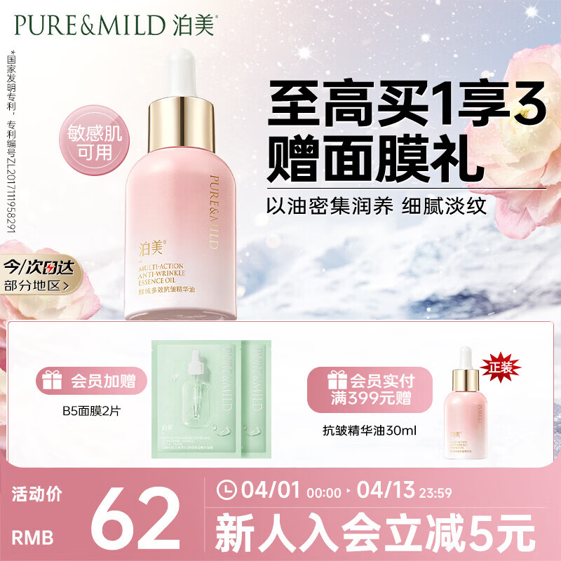 泊美鲜纯多效抗皱精华油以油养肤紧致抗皱面部精油送女友礼物
