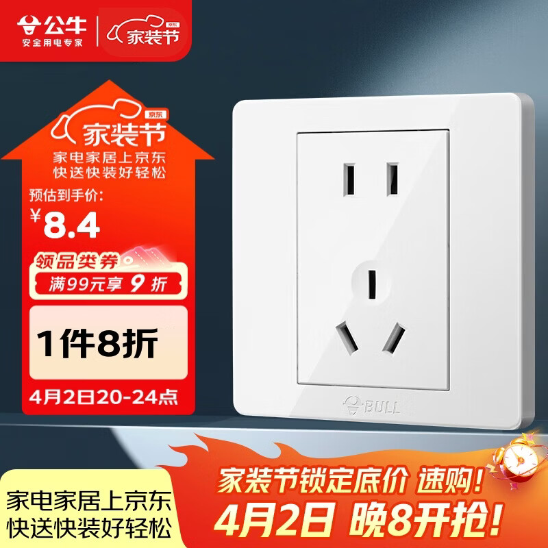 公牛(BULL)开关插座 G07系列 10A五孔插座86型插座面板 G07Z223S 象牙白
